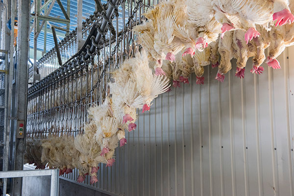 親鶏処理に特化した生産設備があり、ほぼ人の手を介さずに冷却工程まで進みます